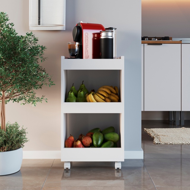 Armário Balcão Multiuso com Rodízios Organizador de Cozinha Fruteira Cantinho do Café Móveis Bonatto