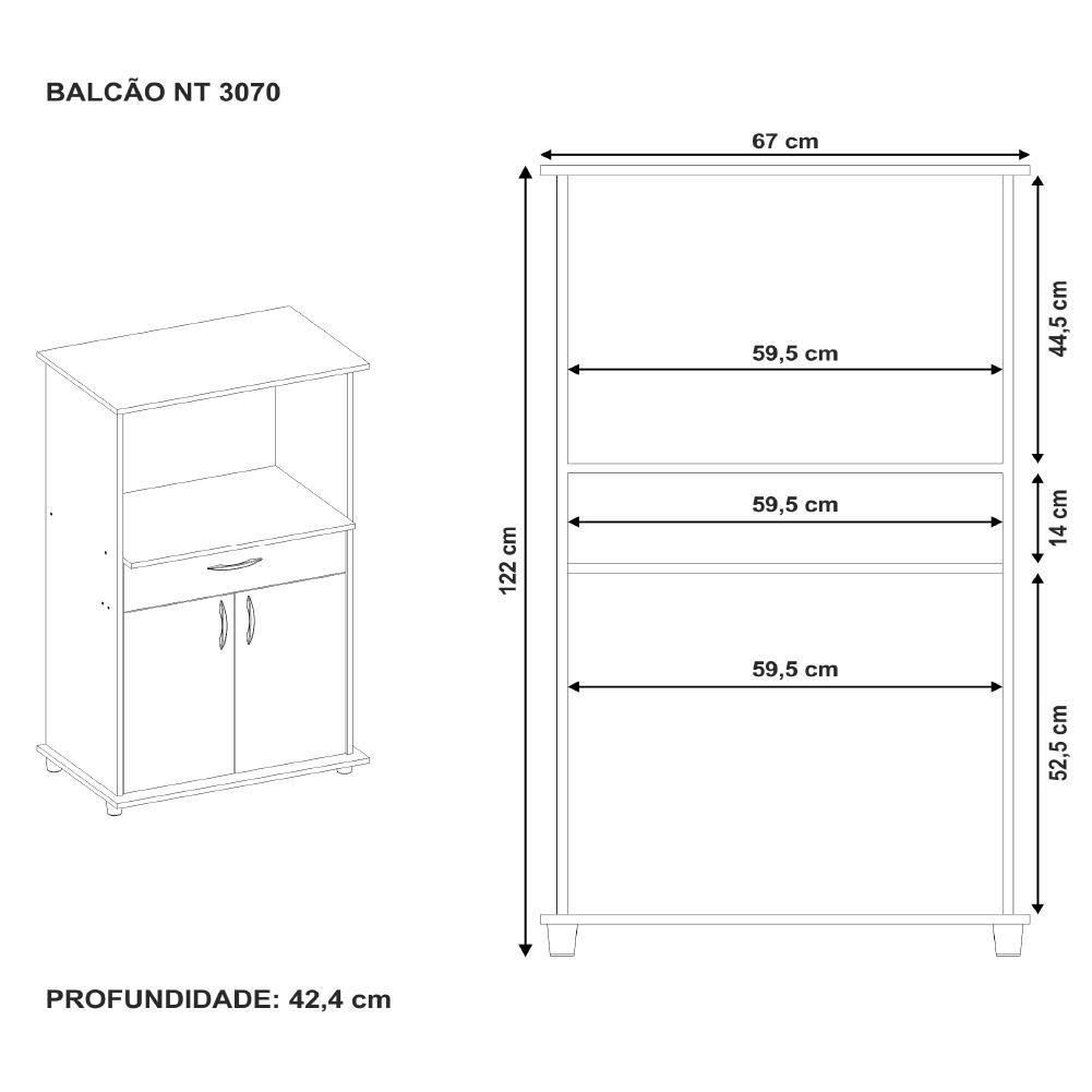 O Armário Balcão Notável vai manter sua cozinha organizada sem perder o estilo! Tem 2 portas para guardar seus utensílios de cozinha, espaço para até 02 fornos, possui 1 gaveta com corrediças metálicas, fazendo com que você tenha uma melhor organização em sua cozinha. Possui pezinhos para facilidade de limpeza! Ótima qualidade, e cabamento em pintura UV, que garante maior resistência e durabilidade ao produto. MEDIDAS: [ A ] = 122 cm [ L ] = 67 cm [ P ] = 42,5 cm PESO: 28kg MODELO: Armário Balcão Notável MARCA: Notável COR: Branco MATERIAL: MDP TIPO DE PINTURA: UV ACABAMENTO: Brilho PORTAS: 2 GAVETAS: 1 CORREDIÇA: Metálica TIPO DE PORTA: Articulada PUXADOR: ABS metalizado PÉS: 4 MATERIAL DOS PÉS: Plástico INSTRUÇÕES E CUIDADOS: Para maior durabilidade, recomendável que a limpeza dos móveis seja feita com pano limpo e levemente umedecido em água e sabão neutro. Em seguida, deverá ser passado um pano limpo e seco. GARANTIA: 90 Dias A Esplanada Móveis se responsabiliza pela entrega dos produtos adquiridos até a porta de entrada ou portaria do endereço indicado, se a portaria do condomínio permitir, as entregas são efetuadas no piso térreo e é de responsabilidade do cliente a locomoção da mercadoria até seu apartamento ou casa. Confira as dimensões do produto e certifique-se de que estão adequadas aos elevadores, portas e corredores do local da entrega. Não fazemos a montagem, desmontagem do produto e/ou portas e janelas, transporte pela escada ou içamento pelo lado de fora do prédio. Não está incluso no serviço de entrega o deslocamento até o interior do apartamento, com ou sem elevador, ou deslocamento em locais de difícil acesso como escadarias. Caso o cliente necessite de entrega dentro das dificuldades mencionadas, deverá entrar em contato para análise e cotação do valor do serviço. Certifique-se de tudo antes de finalizar a compra, evitando assim futuros desagrados ou imprevistos com a entrega.