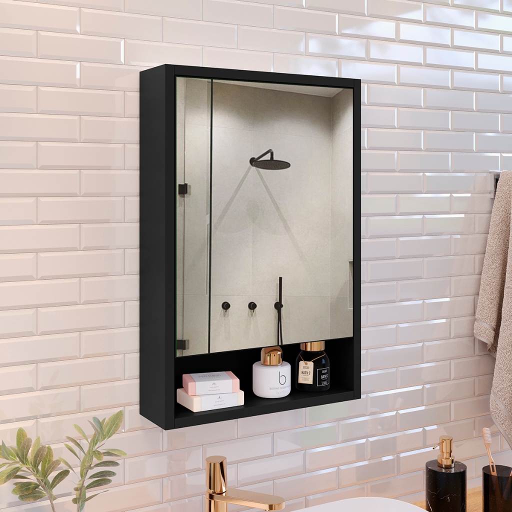 Armário Banheiro Aéreo 1 Porta Espelho Espelheira Gaia