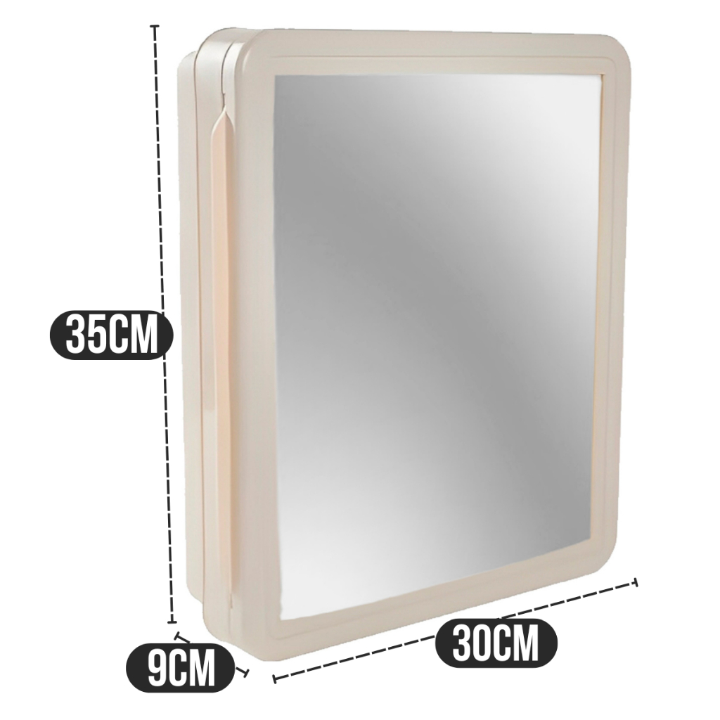 Medidas: Largura - 300 mm Altura - 350 mm Profundidade - 90 mm Com Espelho CARACTERÍSTICA Produzido em PP (Polipropileno), divisórias internas facilitam a acomodação dos objetos, prático e resistente, permite embutir ou sobrepor. Produzido no Brasil e com altíssima qualidade, certificado ISO 9001/2015. Produto totalmente reciclável, garantindo a sustentabilidade e o bem estar das próximas gerações.