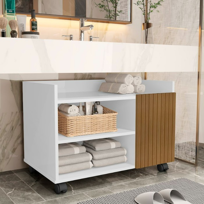 Transforme seu banheiro ou lavabo com o Armário Compacto para Banheiro e Lavabo da Shop Figueiredo. Com dimensões de 60x42x36 cm, este gabinete organizador moderno é a solução ideal para maximizar o espaço e manter a organização em ambientes pequenos. Seu design funcional e elegante garante que você tenha seus itens essenciais sempre à mão, enquanto suas rodas facilitam a mobilidade e adaptação do móvel ao seu espaço. Feito de material MDP resistente, oferece durabilidade e praticidade no dia a dia. O armário requer montagem, mas acompanha manual, tornando o processo simples e direto. Aproveite a combinação de estilo e funcionalidade com este armário compacto que se encaixa perfeitamente em qualquer decoração.