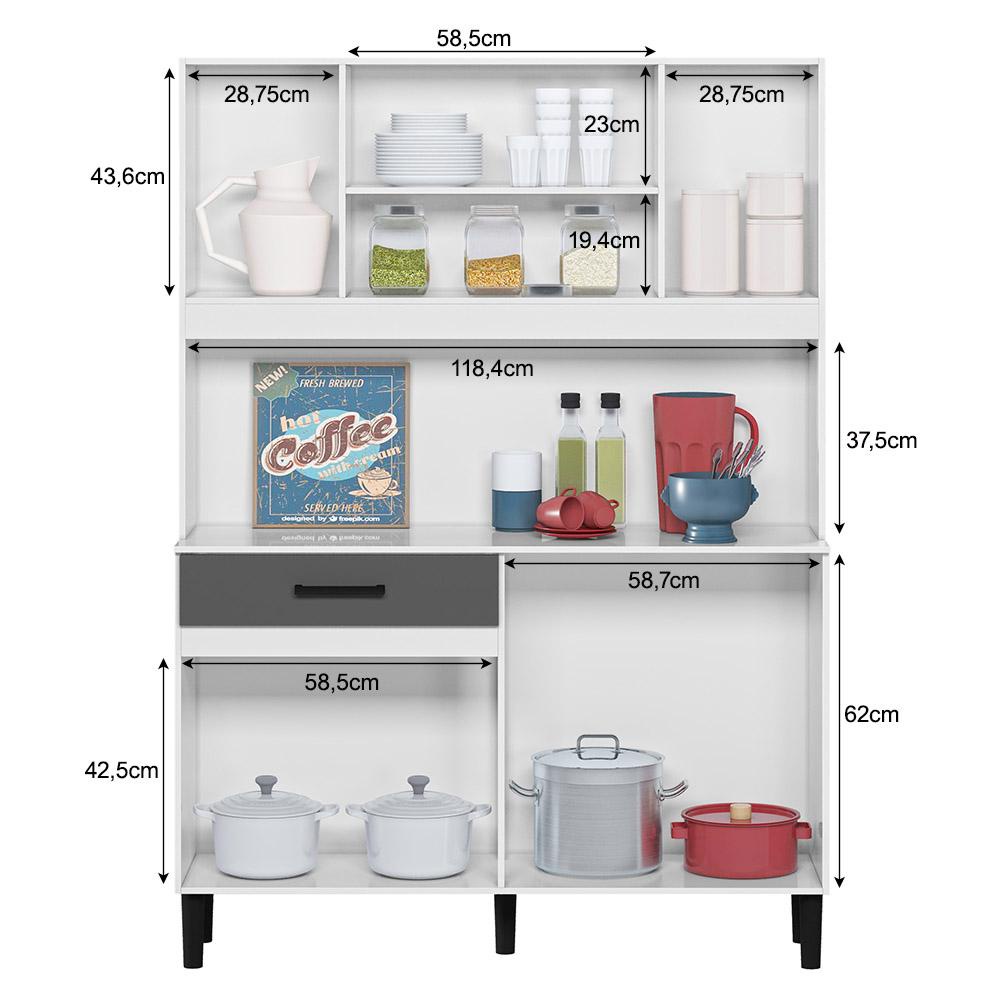 Marca: Nicioli; Linha: Cozinha; Modelo: Magazine 120; Altura: 170 cm; Largura: 121 cm; Profundidade: 35,5 cm; Material da estrutura: MDP de 12 mm (estrutura) e MDP de 15 mm (portas); Acabamento: Pintura; Quantidade de portas: 07; Material de dobradiças: Metálicas; Quantidade de gavetas: 01; Material das corrediças: Metálicas; Com puxador: Sim; Material do puxador: Plástico; Quantidade prateleiras: Não se aplica; Pés com regulagem: Não; Requer montagem: Sim (kit montagem incluso); Condição do item: Novo; É kit: Não; Altura da embalagem: 9,8 cm; Largura da embalagem: 64,3 cm; Comprimento da embalagem: 122 cm; Peso: 42,880 kg; Embalagem do envio: Papelão e plástico; Informações adicionais: - Os objetos que ambientam as fotos não acompanham o produto; - O produto será entregue desmontado; - É de inteira responsabilidade do cliente a montagem do produto e/ou instalação, custos de transporte por escadas e/ou elevadores, guincho ou içamento, assim como possíveis avarias provenientes de manuseio inadequado; - Embora o produto acompanhe o manual de montagem, verifique a complexidade antes de decidir montá-lo sozinho, recomendamos que contrate um profissional de sua confiança; - Fique atento, nossas cores podem sofrer alterações dependendo do seu monitor; - ANTES DE MONTAR O SEU PRODUTO, certifique-se que todas as instruções dispostas no manual, bem como todas as ferragens descritas, estejam presentes dentro da embalagem. Verifique se há alguma peça avariada, caso esteja, prestaremos a devida assistência dentro do prazo da garantia.