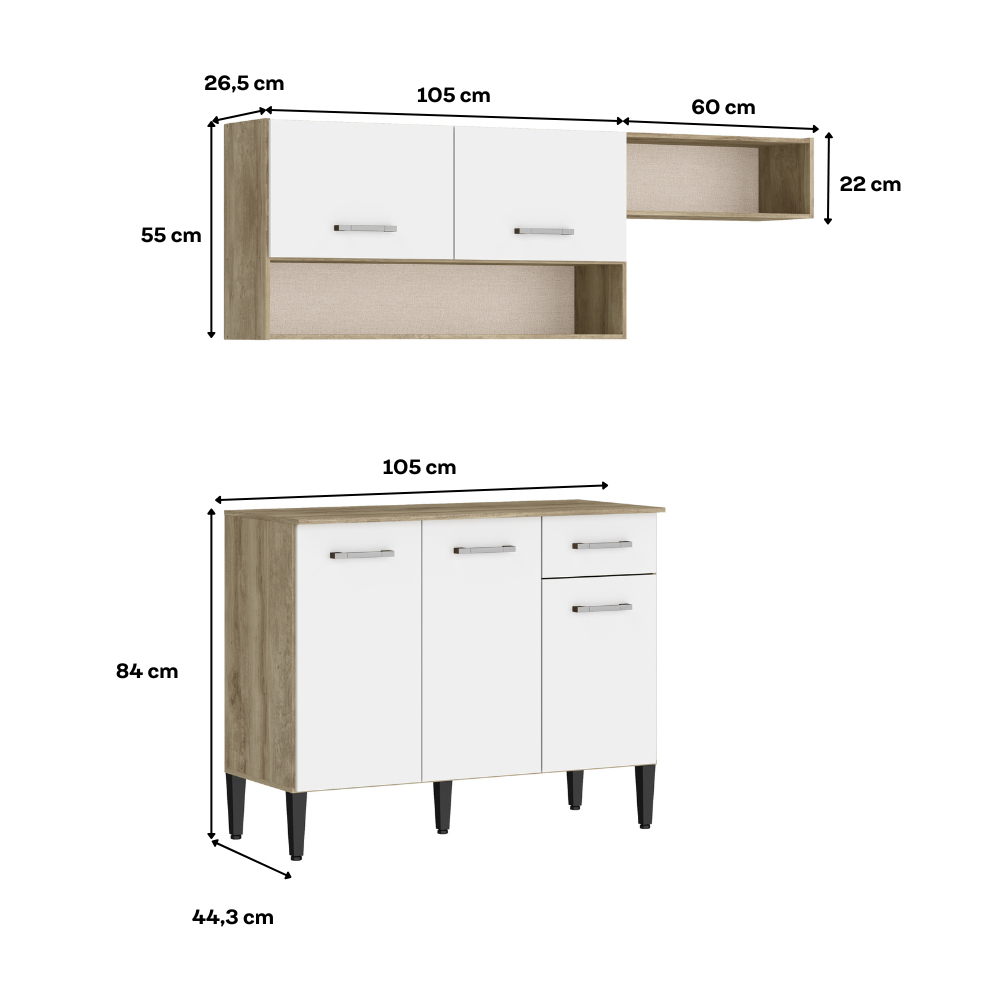 Armário Cozinha Compacta Arizona Tiny Carvalho/Branco Carraro