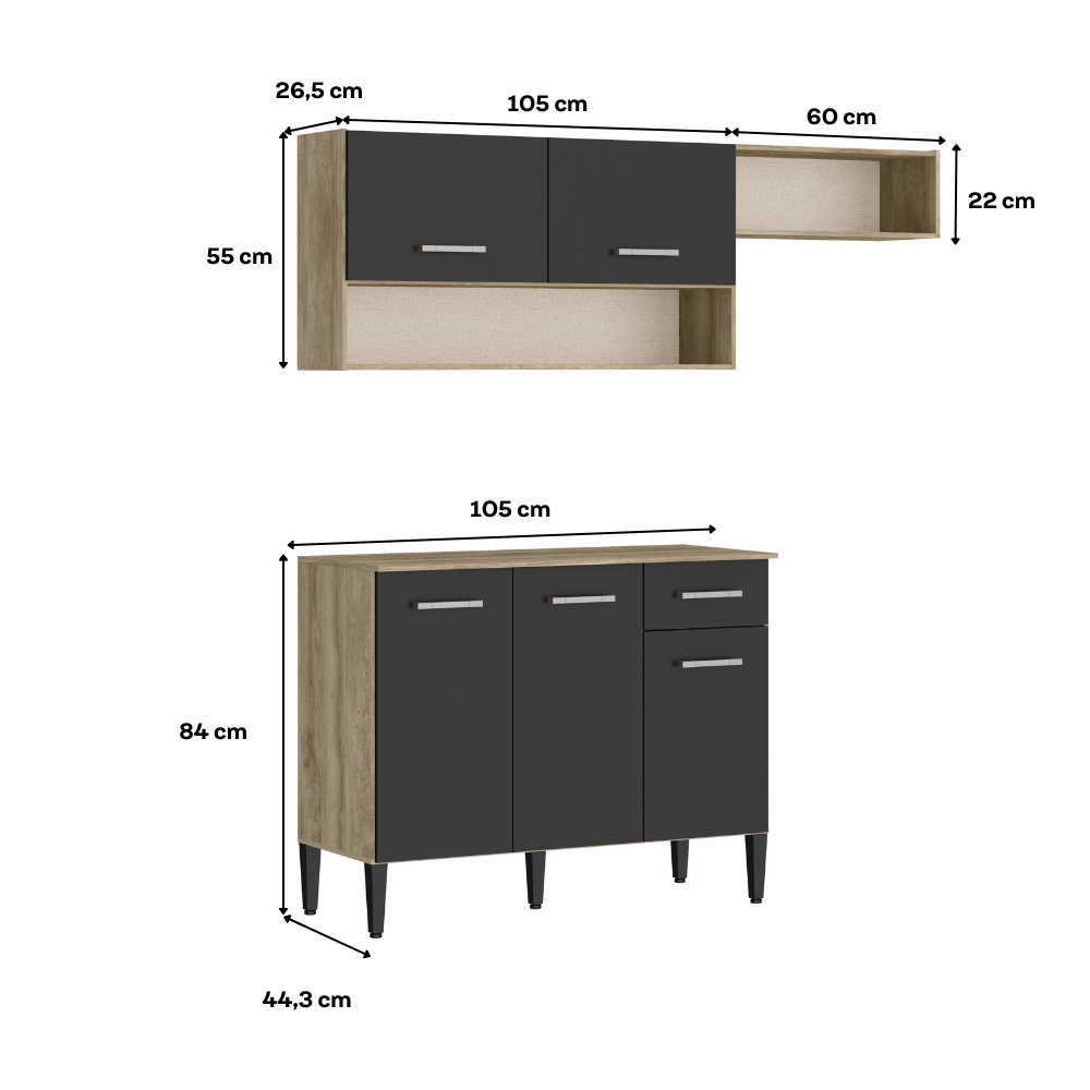 Armário Cozinha Compacta Arizona Tiny Carvalho/Preto Carraro