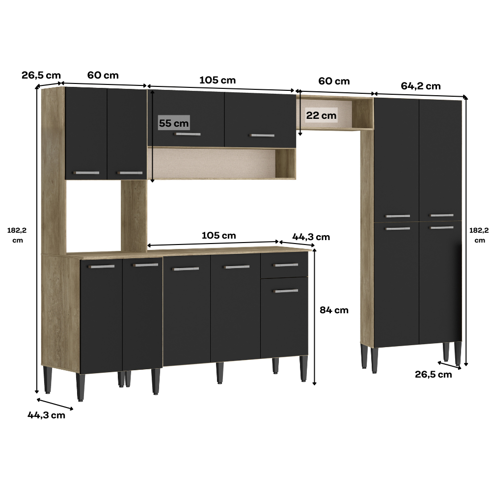 Armário Cozinha Completa Arizona Plus Carvalho com Preto Carraro