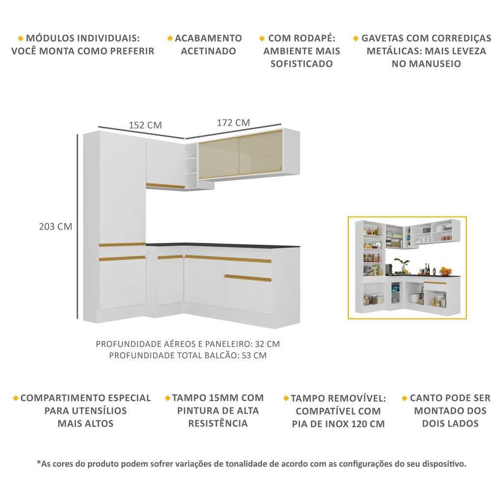 Armário Cozinha Completa Canto Veneza MP2089 Multimóveis Branco + Brinde Jogo de Panelas Tramontina
