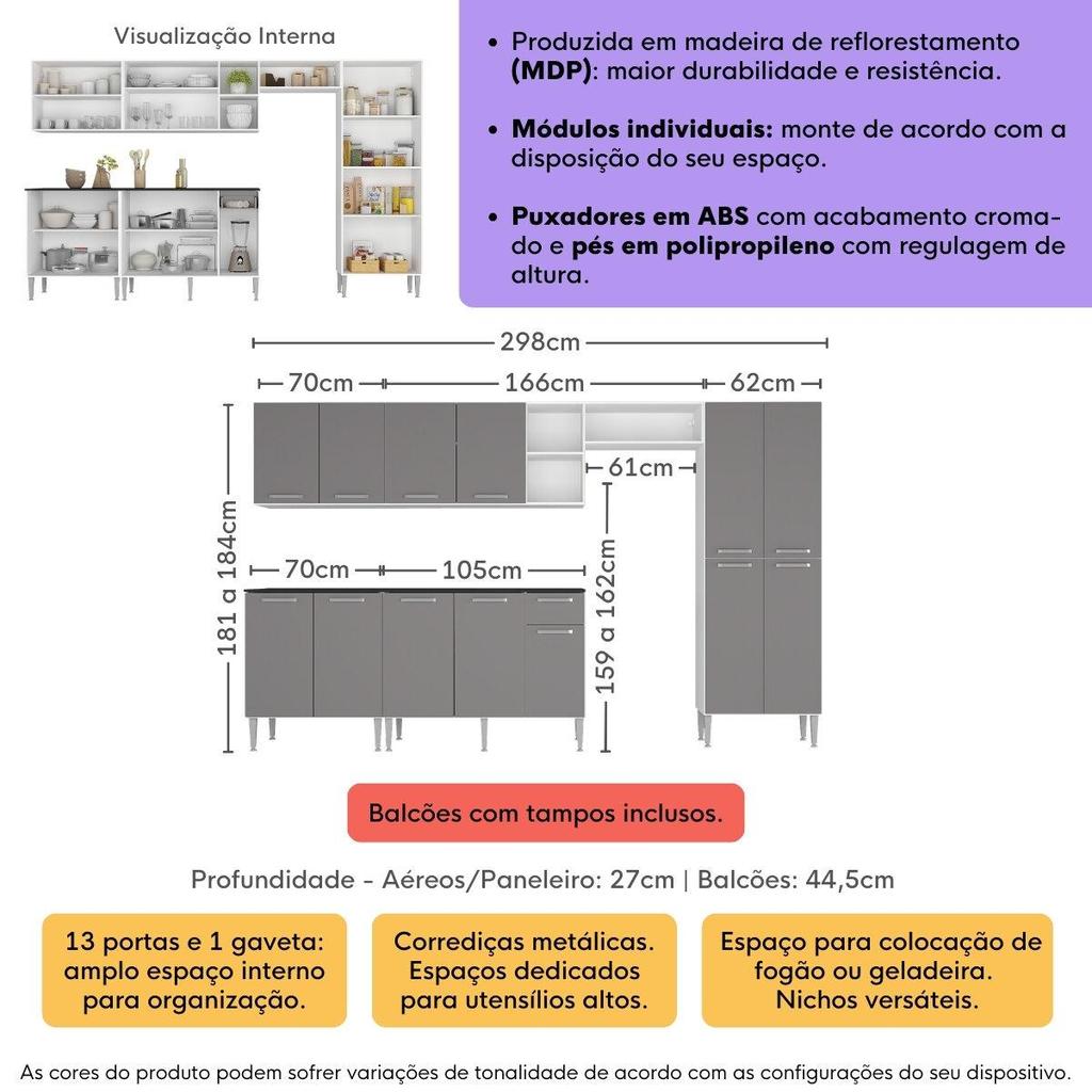 Armário Cozinha Modulada Completa 298cm Pequim Top Multimóveis MP3769