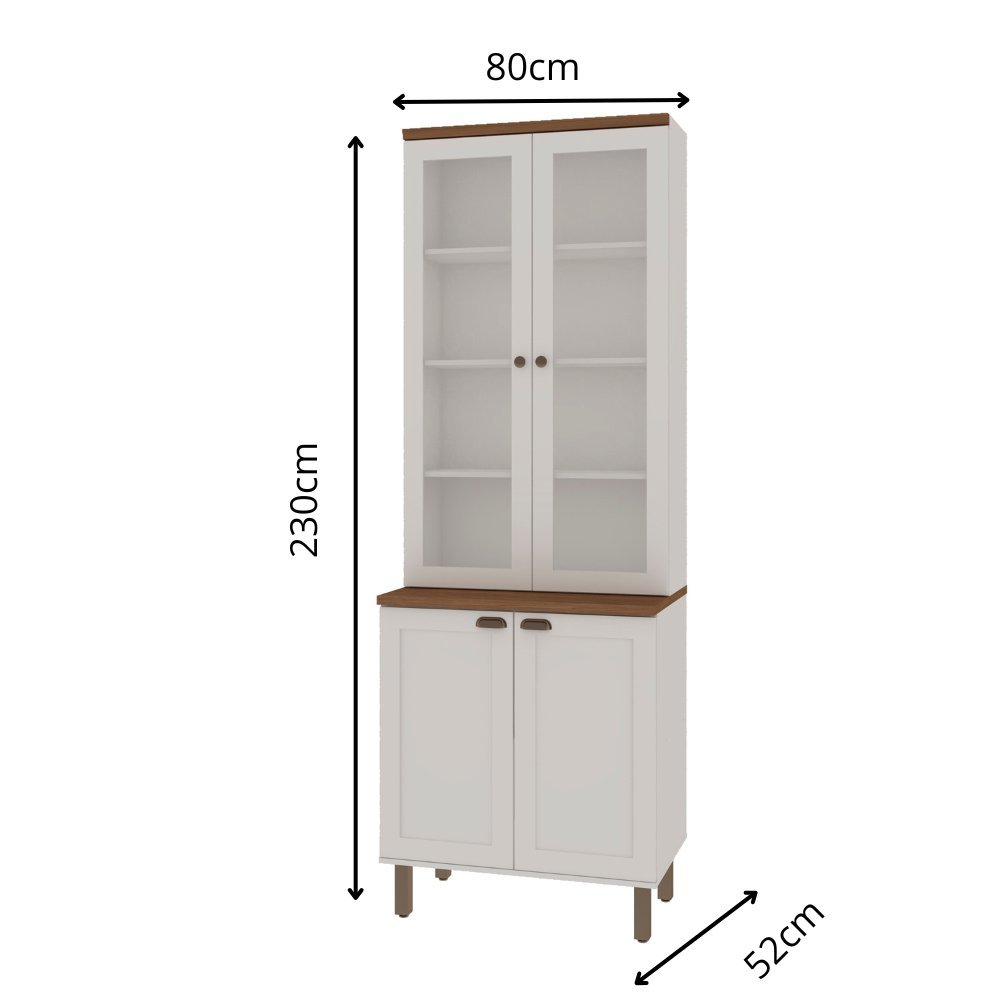 Armário Cristaleira com 2 Portas de Vidro e Balcão com 2 Portas Provençal 100% Mdf Branco/Ébano