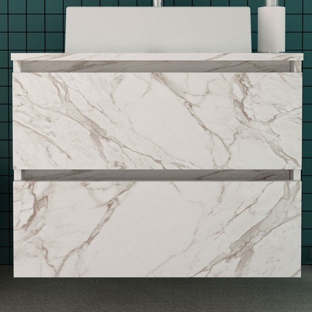 Armário de Banheiro 2 Gavetas Mármore Branco Bn3607 - Tecno Mobili