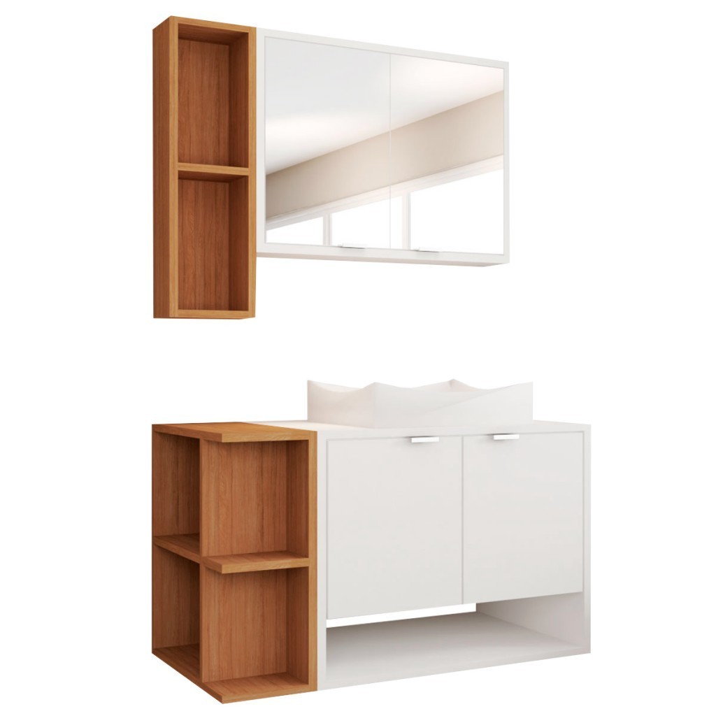 Armário de Banheiro com Cuba Gravatá 4 Portas Branco/Naturalle - Panorama Móveis