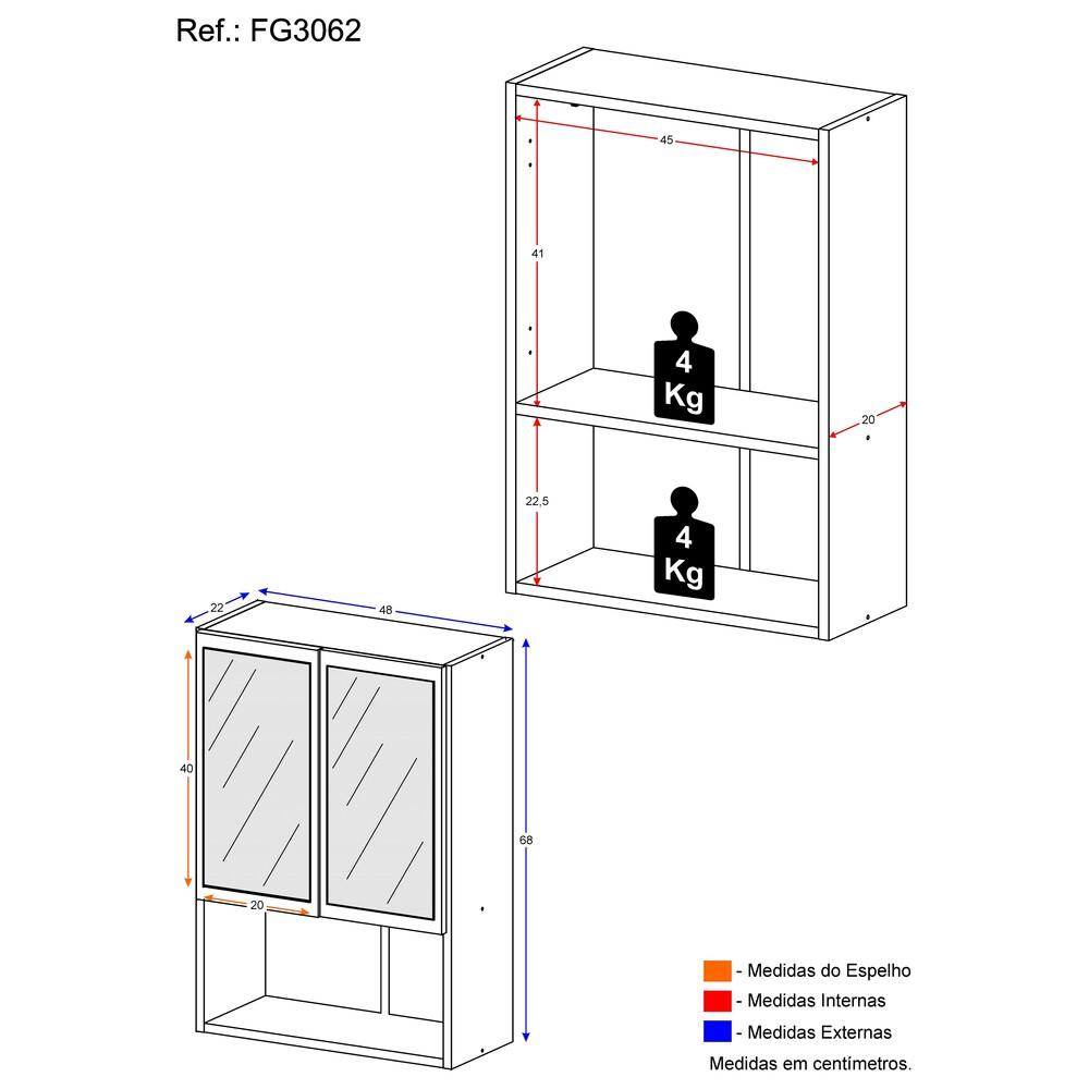 Armário de Banheiro com Espelho e 2 Portas Multimóveis FG3062 Branco