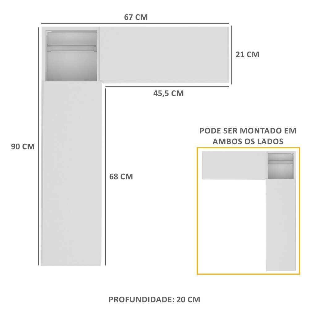 Com os banheiros cada vez menores, é importante saber escolher os móveis da melhor maneira possível. O Armário de Banheiro para vaso sanitário c/ suporte para papel higiênico e 2 Portas Multimóveis é ideal para você manter seus produtos de higiene pessoal, sabonetes, shampoos, papel higiênico e demais objetos organizados. Super funcional, ele é uma ótima opção para aproveitamento do seu espaço e possui uma porta com prateleira interna, espaço para o rolo do papel higiênico e uma porta basculante inversa com espaço para mais itens da sua necessidade e, o melhor: pode ser montado de ambos os lados. Dimensões do produto montado: Altura: 90cm | Largura: 67cm | Profundidade: 20cm *Você pode consultar as medidas internas na imagem técnica do produto. Disponível na cor Branco. *As cores do produto podem sofrer variações de tonalidade de acordo com as configurações do seu dispositivo. Imagem meramente ilustrativa. Decoração não acompanha o produto. Produto NOVO – acompanha nota fiscal, manual de montagem e certificado de garantia. O produto será entregue desmontado e a Multimóveis não disponibiliza o serviço de montagem.