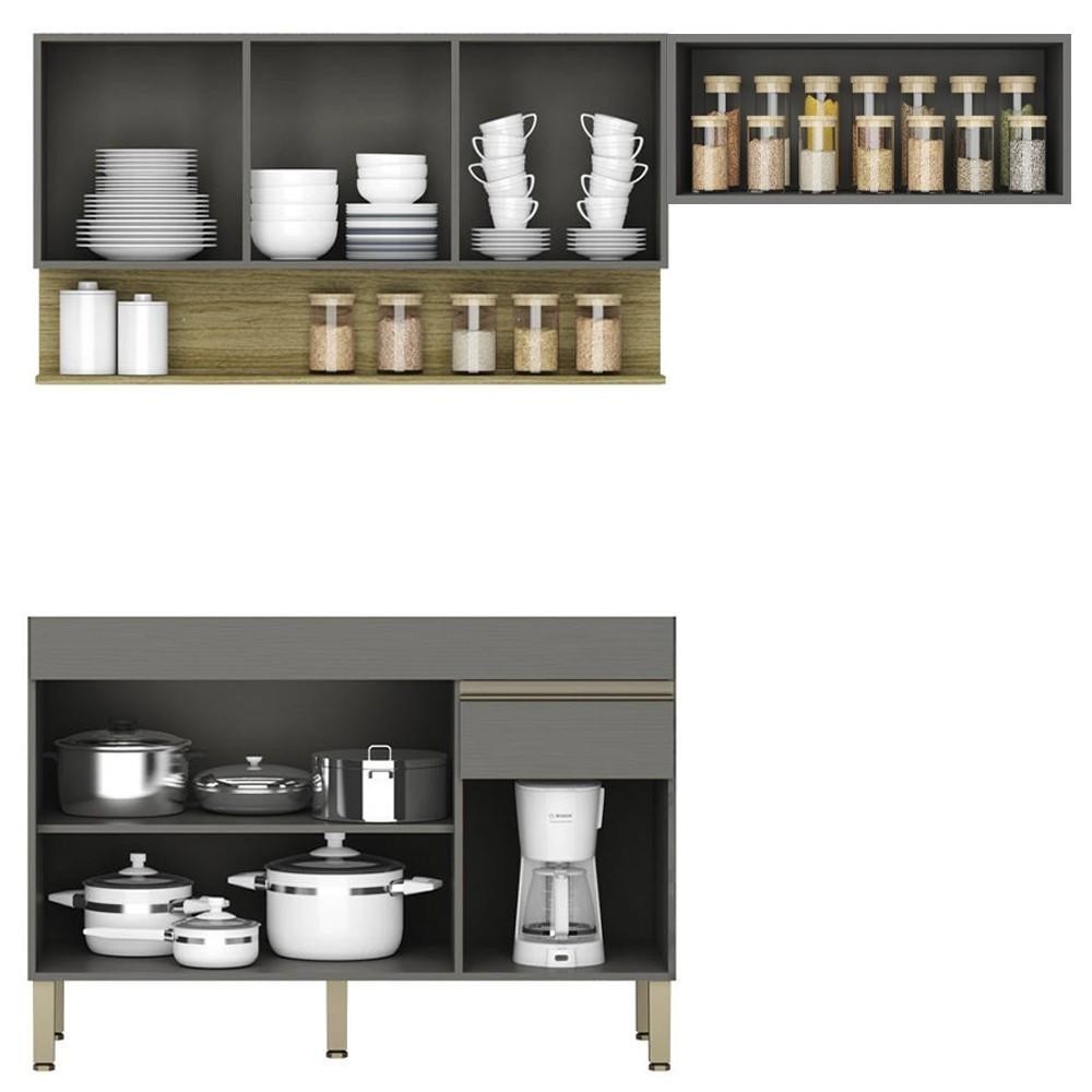 Armário de Cozinha 3 Peças Balcão sem Tampo 120cm Lina02 Z06 Gris/Freijó - Mpozenato
