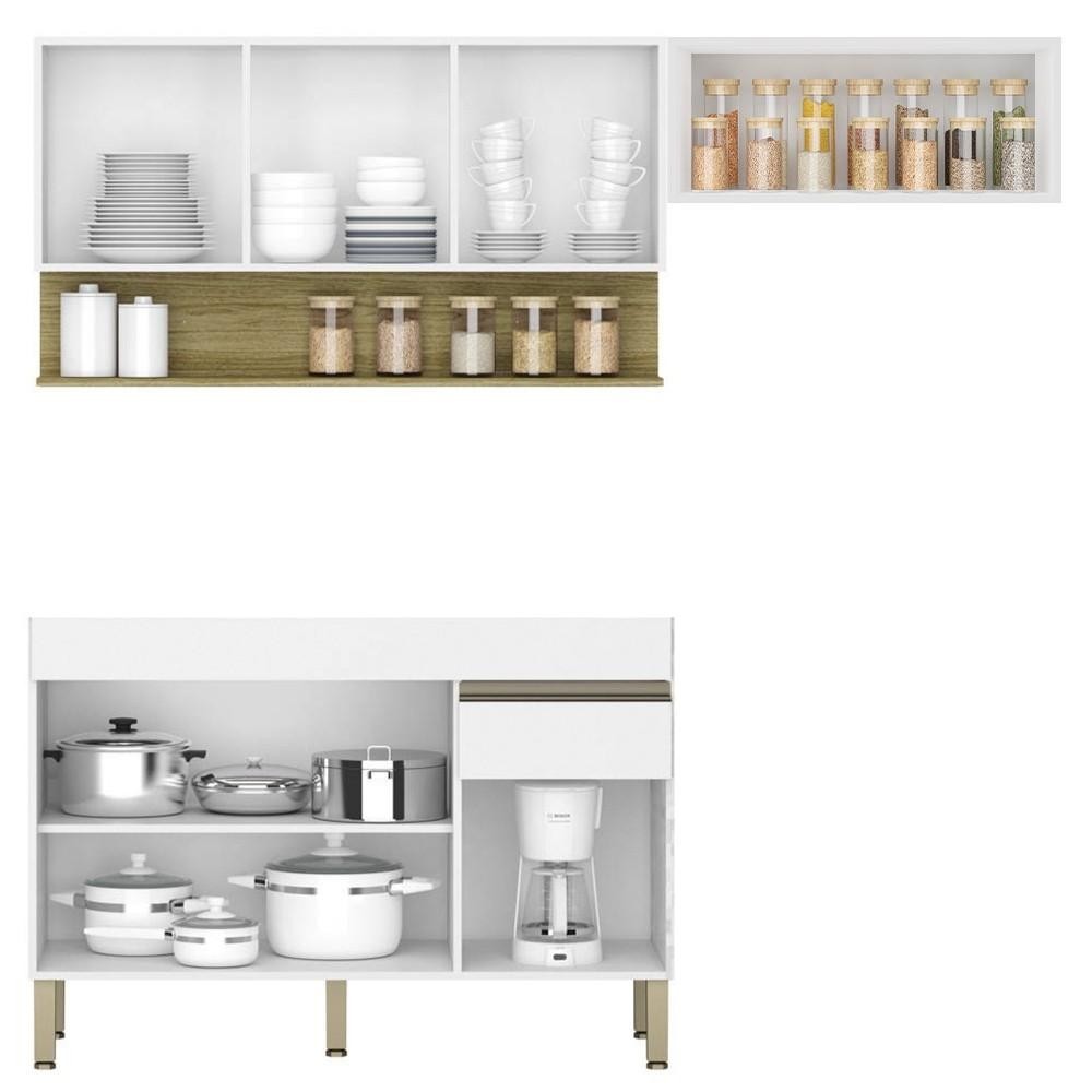 Armário de Cozinha 3 Peças Balcão sem Tampo 120cm Lina02 Z06 Supremo/Freijó - Mpozenato