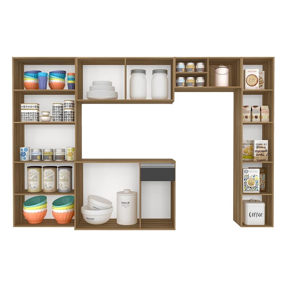 O Armário de Cozinha 5 Peças Liris é um ótimo móvel para pequenos ambientes, por ser suspenso e fabricado com materiais de qualidade esse armário proporciona facilidade na limpeza e uma beleza incomparável! Detalhes Técnicos Medidas da Cozinha Montada: A:156cm | L:240,6cm | P:37cm - Balcão: A: 61,5CM | L: 90CM | P: 37CM - Paneleiro Simples: A:156CM | L: 30CM | P: 27,5CM - Paneleiro Duplo: A:156CM | L:59,1CM | P: 27,5CM - Aéreo 2 Portas: A:40CM | L:90CM | P: 26CM - Aéreo c/ Nichos: A: 28,2CM | L:61,5CM | P:26CM Materiais de Fabricação - Fabricada em MDP com acabamento em FF (Finish Foil) - Tonalidade: Borea/Grafite - Corrediça Metálica - Puxador em PVC Conteúdo da Embalagem - 01 Cozinha - Manual de Montagem - Acessório para Montagem Observações Importantes: - Imagens ambientadas meramente ilustrativas, objetos decorativos não compõe o produto; - Produto novo, garantia somente para defeitos de fabricação: 3meses; - Não realizamos entregas em zonas rurais, via caminhos fluviais e distritos, NÃO ACEITAMOS CEP GERAL; - Não trabalhamos com entrega agendada. O recebedor deve ter mais de 18 anos. O valor do frete não inclui: subida de escada, elevador ou lançamento de produto, em condomínio residencial a entrega é feita somente até a portaria. As entregas são realizadas em dias e horários comerciais; - Ao receber o produto observe se a embalagem está em perfeita condição. Confira atentamente a quantidade de volumes; - Produto entregue desmontado. É responsabilidade do cliente a montagem/instalação do produto, inclusive despesa para sua realização. Recomendamos a contratação de um profissional especializado; - Evitar a exposição direta à luz solar e à umidade. Limpar com pano macio e seco, não utilizar produtos químicos; - A cor do produto pode variar de acordo com o monitor, a iluminação do ambiente ou sua percepção visual.