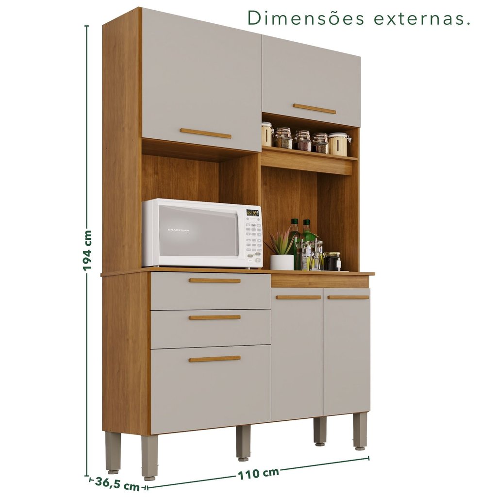 Se você adora organização, olha só que dica bacana para deixar a sua cozinha ainda mais bonita e completa, do jeitinho que você sempre sonhou! O Armário de Cozinha Dubai é o que você precisa para sua cozinha. Ele possui diversos compartimentos para guardar utensílios, mantimentos e o que você quiser. São prateleiras espaçosas para organizar tudo do jeito que sempre quis, 2 gavetas com corrediças telescópicas para melhor abertura e cores e estilo que combinam com qualquer ambiente. Aproveite e adquira logo este lindo armário de cozinha!! Estilo: Moderno Modular: Sim Peso (kg): 45 Garantia: 03 Meses Altura (cm): 194 Acabamento: Pintura UV Largura (cm): 110 Possui Pés: Sim Possui Portas: Sim Tipo de Porta: Bater Possui Gavetas: Sim Possui Rodízio: Não Suporta Até (kg): 35 Profundidade (cm): 36.5 Escala de Brilho: Semi-Brilho Gaveta com Chave: Não Material dos Pés: Polipropileno Material da Porta: MDP Origem do Produto: Nacional Ambiente Principal: Cozinha Material da Gaveta: MDP Material Principal: MDP Possui Prateleiras: Sim Acabamento da Porta: Pintura Quantidade de Peças: 5 Sapatas Niveladoras: Sim Acabamento da Gaveta: Pintura UV Material da Corrediça: Metálica Material da Prateleira: MDP Peso Máximo por Gaveta: 5 Acabamento da Prateleira: Pintura UV Tipo de Puxador da Porta: Externo Escala de Brilho da Porta: Semi-Brilho Tipo de Puxador da Gaveta: Externo Peso Máximo por Prateleira: 3 Tipo de Armário de Cozinha: Cozinha Compacta Tipo de Corrediça da Gaveta: Metálica Telescópica Material do Puxador da Gaveta: MDF Escala de Brilho da Prateleira: Semi-Brilho Tipo de Dobradiça/Corrediça da Porta: Simples Material da Dobradiça/Corrediça da Porta: Metálica Marca: Sallêto Móveis Cor: Cinamomo/Off White Cor do Produto: Cinamomo/Off-White Itens Inclusos: 1 Armário de Cozinha completo, Manual de Montagem e Kit Ferragens. Cor Predominante: Bege Linha ou Coleção: Dubai Quantidade de Prateleiras: 04 Prateleiras Quantidade de Gavetas: 02 Gavetas