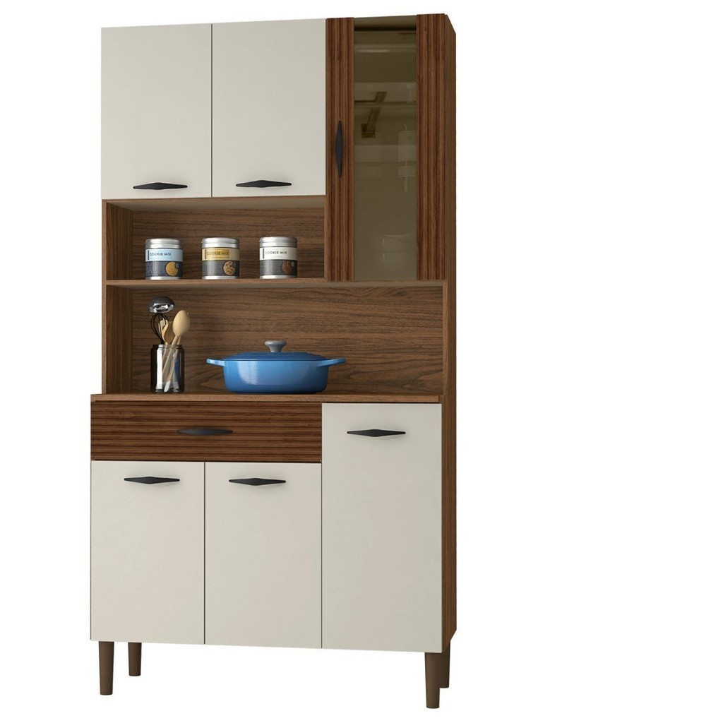 Armário de Cozinha 6 Portas 1 Gaveta Golden Nogueira/Off White/CP-Ripado