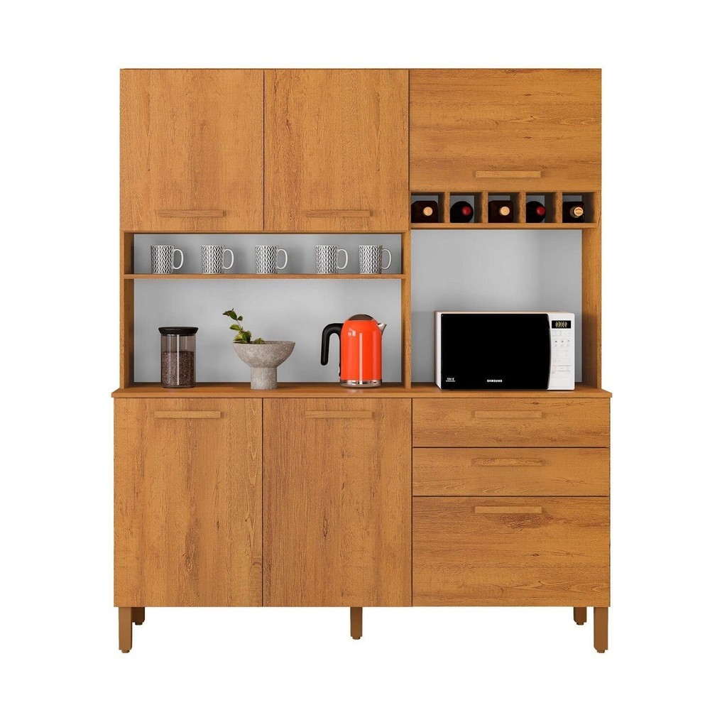 O Armário de Cozinha 6 Portas 2 Gavetas 100% MDF Athenas Espresso Móveis é um modelo compacto que se encaixa em vários ambientes! Moderna, bonita e desenvolvida com materiais de altíssima qualidade, é fabricada em 100% MDF, material ecologicamente correto que confere boa resistência e durabilidade à peça. Ela conta com corrediças telescópicas nas gavetas e pistão a gás na porta basculante, tornando-a ainda mais prática, segura e perfeita para o seu ambiente. Estilo: Clássico Modular: Não Peso (kg): 95 Garantia: 03 Meses Altura (cm): 200.2 Acabamento: Pintura UV Largura (cm): 140 Possui Pés: Sim Possui Vidro: Não Possui Portas: Sim Tipo de Porta: Misto (Bater e Basculante) Altura dos Pés: 14 Pés Reguláveis: Sim Possui Gavetas: Sim Possui Rodízio: Não Suporta Até (kg): 45 Acompanha Tampo: Sim Profundidade (cm): 45 Escala de Brilho: Semi-Brilho Gaveta com Chave: Não Material dos Pés: Plástico Material da Porta: MDF Origem do Produto: Nacional Acabamento dos Pés: Polipropileno Ambiente Principal: Cozinha Balcão Suporta Pia: Não Espessura do Tampo (mm): 15 Material da Gaveta: MDF Material Principal: MDF Possui Prateleiras: Sim Acabamento da Porta: Pintura UV Sapatas Niveladoras: Sim Acabamento da Gaveta: Pintura UV Balcão Acompanha Pia: Não Material da Corrediça: Metálica Material da Prateleira: MDF Peso Máximo por Gaveta: 5 Acabamento da Prateleira: Pintura UV Tipo de Puxador da Porta: Externo Escala de Brilho da Porta: Semi-Brilho Espessura da Estrutura (mm): 15 Tipo de Puxador da Gaveta: Externo Escala de Brilho da Gaveta: Semi-Brilho Peso Máximo por Prateleira: 3 Tipo de Armário de Cozinha: Cozinha Completa Acompanha Rodapé Decorativo: Não Tipo de Corrediça da Gaveta: Metálica Telescópica Material do Puxador da Porta: MDF Material do Puxador da Gaveta: MDF Escala de Brilho da Prateleira: Semi-Brilho Informações Complementares (Novo): Cozinha em 100% MDF Tipo de Dobradiça/Corrediça da Porta: Simples Material da Dobradiça/Corrediça da Porta: Metálica Marca: Espresso Móveis Cor Flex: Não Cor Interna: Cinamomo Cor do Produto: Cinamomo Itens Inclusos: 1 cozinha Athenas + pés + kit ferragem Cor Predominante: Marrom Quantidade de Prateleiras: 06 Prateleiras Quantidade de Portas: 6 Portas Quantidade de Gavetas: 02 Gavetas Quantidade do Produto: 1