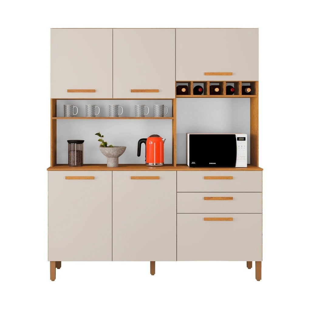 O Armário de Cozinha 6 Portas 2 Gavetas 100% MDF Athenas Espresso Móveis é um modelo compacto que se encaixa em vários ambientes! Moderna, bonita e desenvolvida com materiais de altíssima qualidade, é fabricada em 100% MDF, material ecologicamente correto que confere boa resistência e durabilidade à peça. Ela conta com corrediças telescópicas nas gavetas e pistão a gás na porta basculante, tornando-a ainda mais prática, segura e perfeita para o seu ambiente. Estilo: Clássico Modular: Não Peso (kg): 95 Garantia: 03 Meses Altura (cm): 200.2 Acabamento: Pintura UV Largura (cm): 140 Possui Pés: Sim Possui Vidro: Não Possui Portas: Sim Tipo de Porta: Misto (Bater e Basculante) Altura dos Pés: 14 Pés Reguláveis: Sim Possui Gavetas: Sim Possui Rodízio: Não Suporta Até (kg): 45 Acompanha Tampo: Sim Profundidade (cm): 45 Escala de Brilho: Semi-Brilho Gaveta com Chave: Não Material dos Pés: Plástico Material da Porta: MDF Origem do Produto: Nacional Acabamento dos Pés: Polipropileno Ambiente Principal: Cozinha Balcão Suporta Pia: Não Espessura do Tampo (mm): 15 Material da Gaveta: MDF Material Principal: MDF Possui Prateleiras: Sim Acabamento da Porta: Pintura UV Sapatas Niveladoras: Sim Acabamento da Gaveta: Pintura UV Balcão Acompanha Pia: Não Material da Corrediça: Metálica Material da Prateleira: MDF Peso Máximo por Gaveta: 5 Acabamento da Prateleira: Pintura UV Tipo de Puxador da Porta: Externo Escala de Brilho da Porta: Semi-Brilho Espessura da Estrutura (mm): 15 Tipo de Puxador da Gaveta: Externo Escala de Brilho da Gaveta: Semi-Brilho Peso Máximo por Prateleira: 3 Tipo de Armário de Cozinha: Cozinha Compacta Acompanha Rodapé Decorativo: Não Tipo de Corrediça da Gaveta: Metálica Telescópica Material do Puxador da Porta: MDF Material do Puxador da Gaveta: MDF Escala de Brilho da Prateleira: Semi-Brilho Informações Complementares (Novo): Cozinha em 100% MDF Tipo de Dobradiça/Corrediça da Porta: Simples Material da Dobradiça/Corrediça da Porta: Metálica Marca: Espresso Móveis Cor Flex: Não Cor Interna: Cinamomo Cor do Produto: Cinamomo/Off White Itens Inclusos: 1 cozinha Athenas + pés + kit ferragem Cor Predominante: Branco Quantidade de Prateleiras: 06 Prateleiras Quantidade de Portas: 6 Portas Quantidade de Gavetas: 02 Gavetas Quantidade do Produto: 1