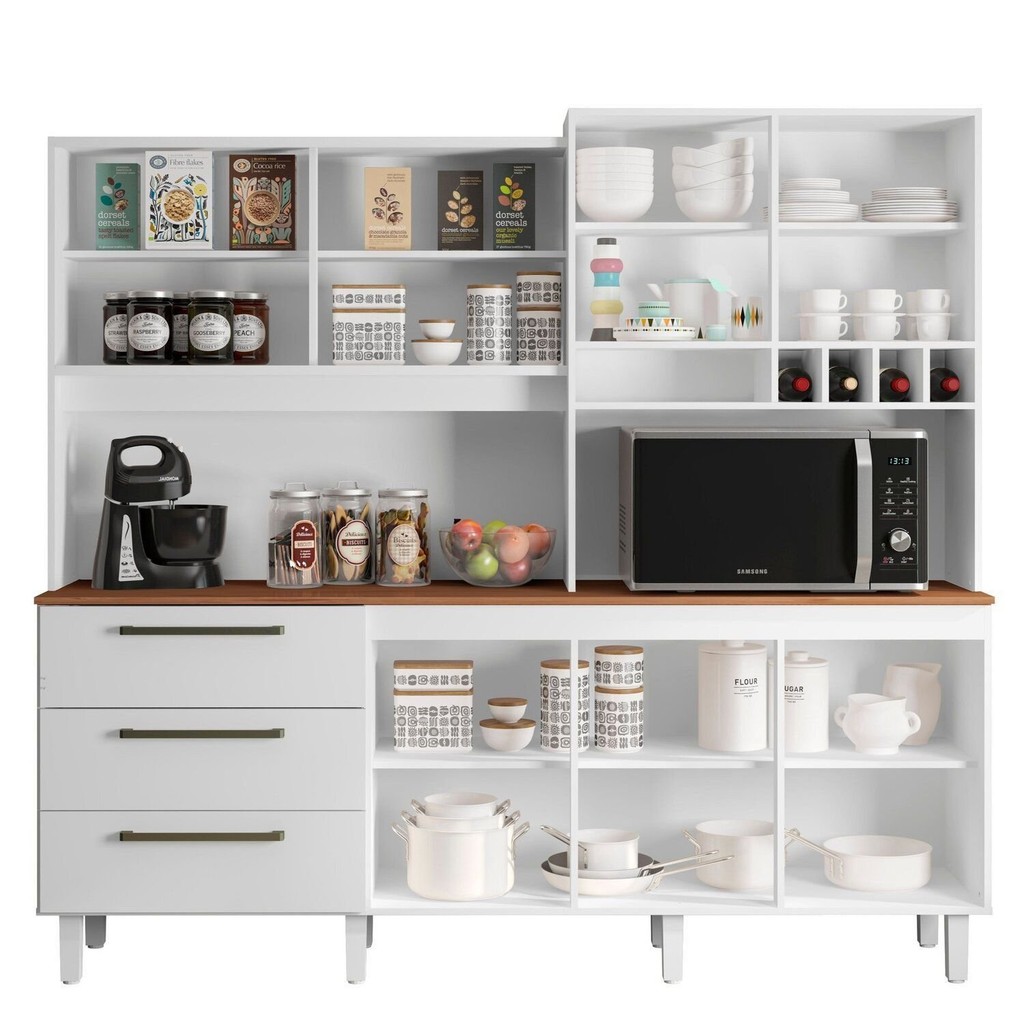 Armário de Cozinha 6 Portas 3 Gavetas Mega Branco