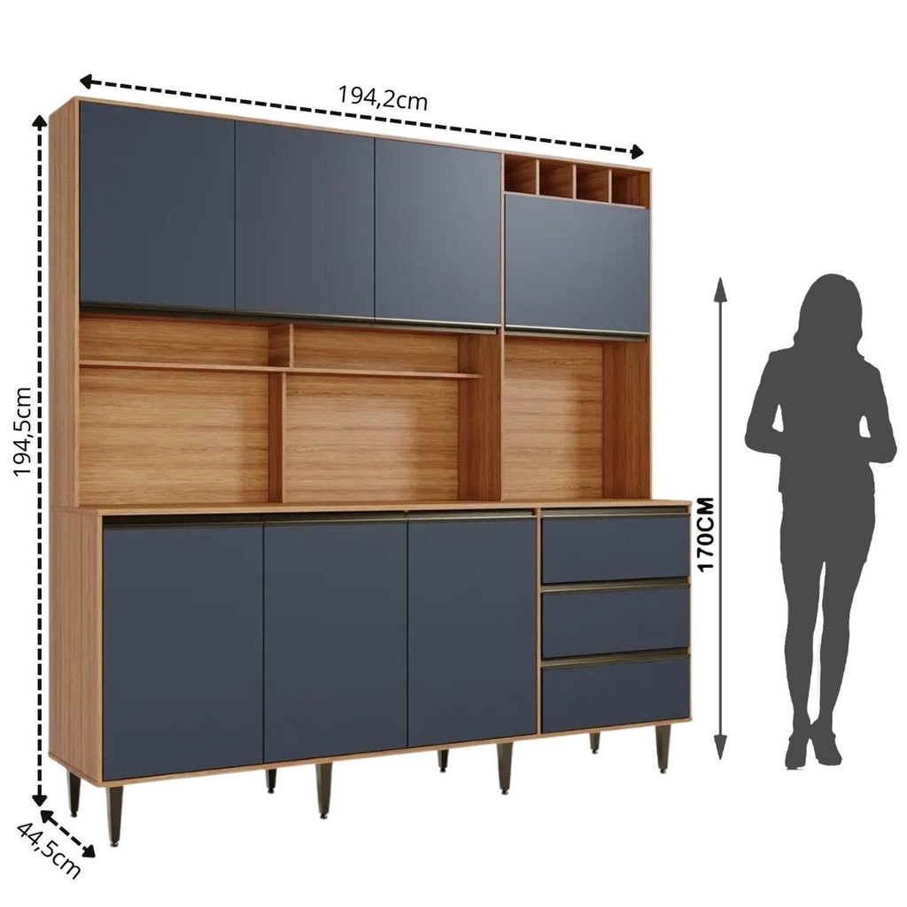 Armário de Cozinha 7 Portas 3 Gavetas Nicho Versatti