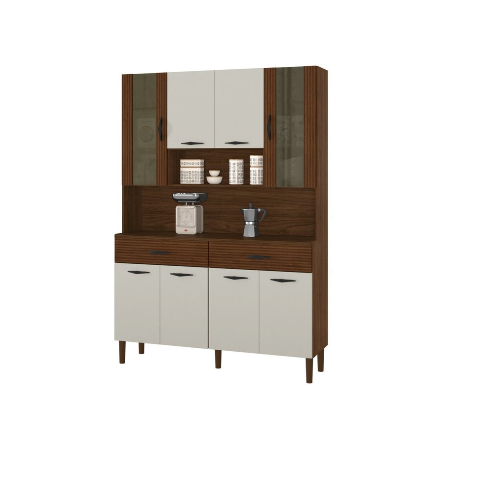 Armário de Cozinha 8 Portas 2 Gavetas Golden Nogueira/Off White/CP- Ripado