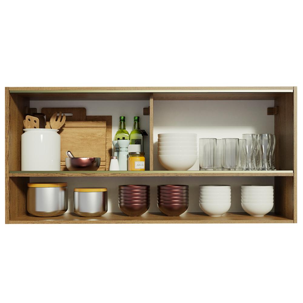 Armário de Cozinha Aéreo 2 Portas de Correr de Vidro Reflex com Nicho Aberto Rustic Emilly Madesa
