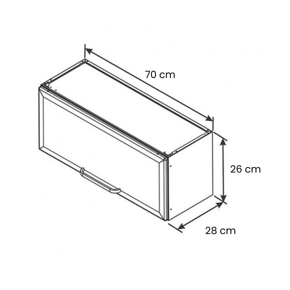Armario de Cozinha Aereo Itatiaia Luce 1 Porta Branco Geladeira Horizontal IPH-70 Fabricado em aço de alta qualidade, testado e verificado em laboratório próprio da Itatiaia, e que recebe em seguida tratamento químico específico para garantir durabilidade e proteção contra ferrugem. A pintura eletrostática a pó deste armário é feita com tinta atóxica, ecologicamente correta e, portanto, de aplicação segura e sem riscos aos operadores. Possui puxadores em alumínio, de acabamento resistente, leve, durável, bonito, com alta resistência à corrosão e a variações bruscas de temperatura. ATENÇÃO: - Não nos responsabilizamos pela montagem / instalação dos produtos. - Imagens meramente ilustrativas. - Verifique com os fabricantes dos produtos eventuais limitações à utilização de todos os recursos e funcionalidades. INFORMAÇÕES TÉCNICAS: Marca: Itatiaia Linha: Luce Modelo: IPH-70 LUCE BRA Cor: BRANCO NEVE Material: corpo portas em aço Pintura/Revestimento: pintura eletrostática a pó Acabamento: Alto Brilho Resistente Quantidade de portas: 1 Quantidade de prateleiras: 1 Corrediças: não acompanha Dobradiças: metálicas 26mm Puxadores: alumínio Necessita de montagem: sim Sistema de montagem: parafusos Instruções/Cuidados: limpeza com pano umedecido Peso com embalagem: 5,900kg Dimensões do produto na embalagem: 0,74 (P) x 0,285 (L) x 0,95(A)m Dimensões do produto montado: 0,28(P) x 0,7 (L) x 0,26 (A) m Garantia: 12 meses SAC: 0800 032 6111