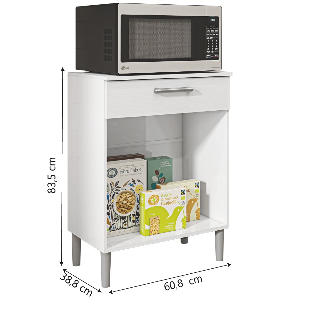Armário de Cozinha Balcão Multiuso Para Micro Ondas Com Gaveta Diamante Branco Kit's Paraná