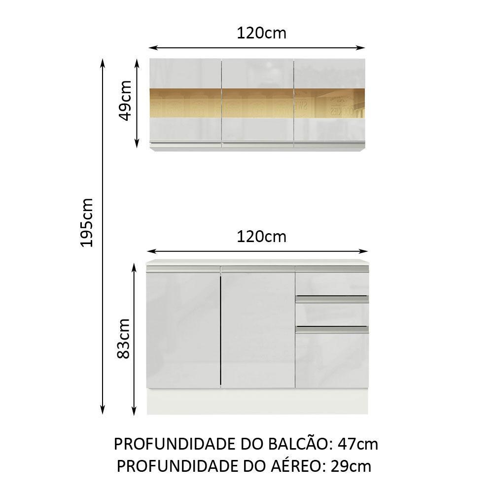 Armário de Cozinha Compacta 100% MDF 120 cm Frentes Branco Brilho Smart Madesa 01