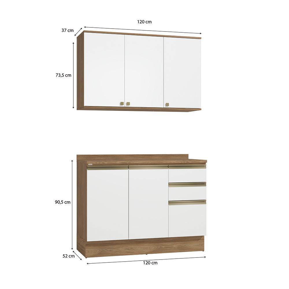 Armário de Cozinha Compacta 100% MDF 120cm Nogueira/Branco Celeste Kappesberg