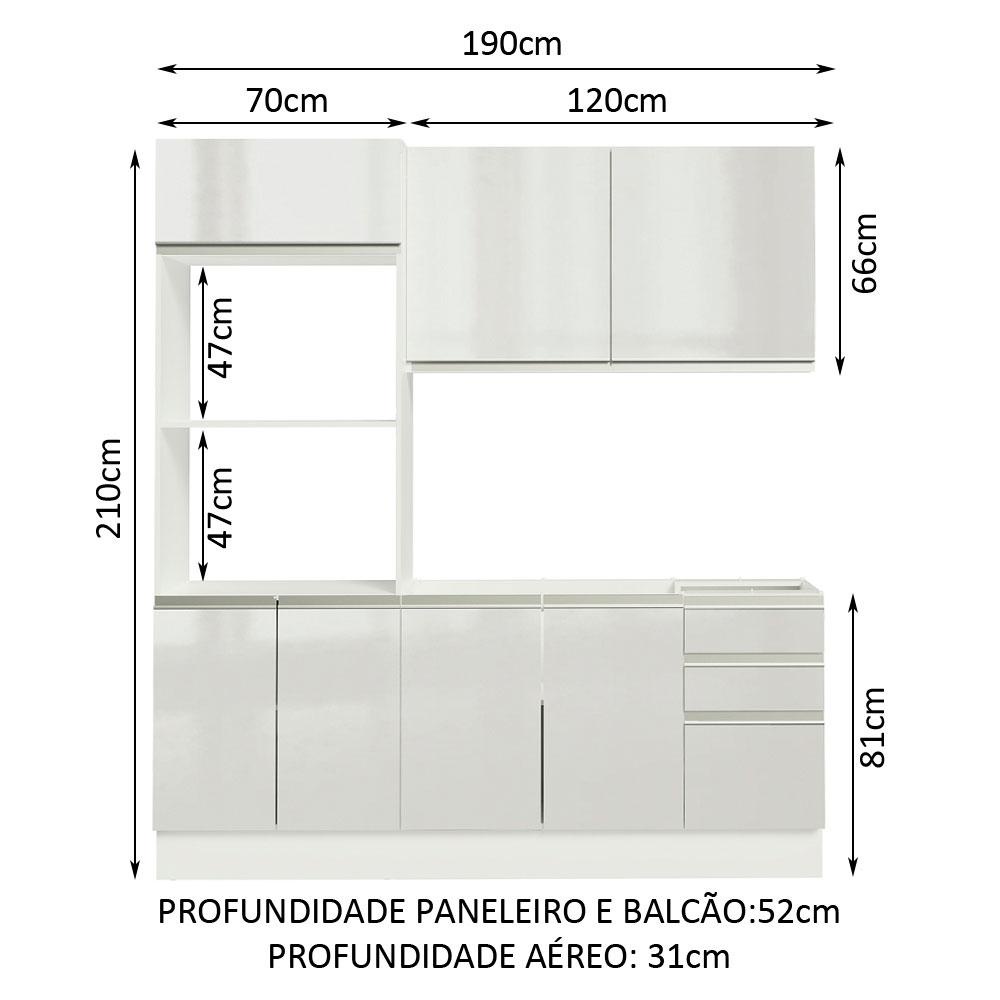 Armário de Cozinha Compacta 100% MDF 190cm Portas Branco Brilho Acordes Madesa 01
