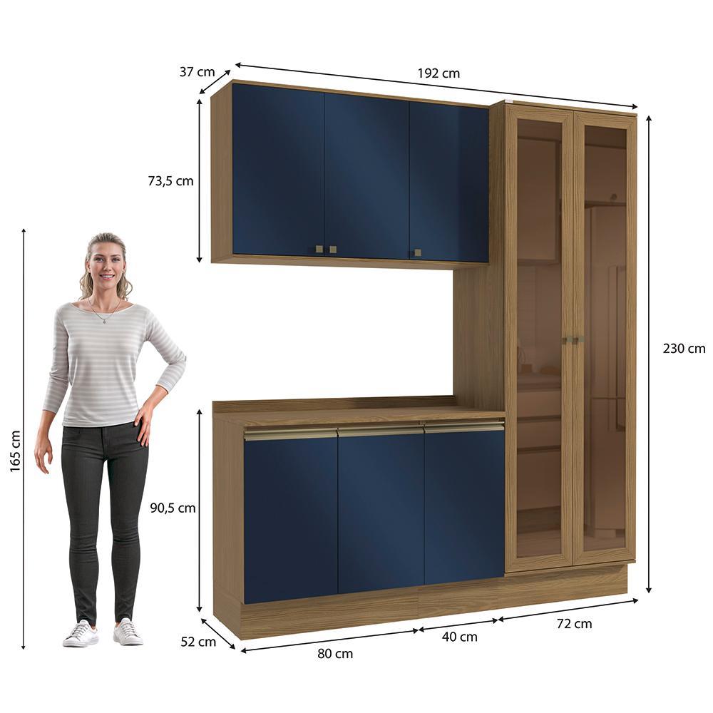 Armário de Cozinha Compacta 100% MDF 192cm Nogueira/Azul Profundo Celeste Kappesberg