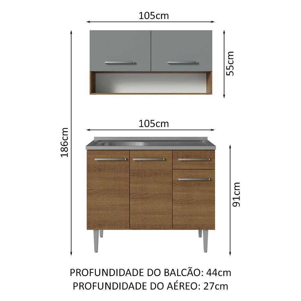 Armário de Cozinha Compacta 105cm com Pia Rustic/Cinza Emilly Madesa 04