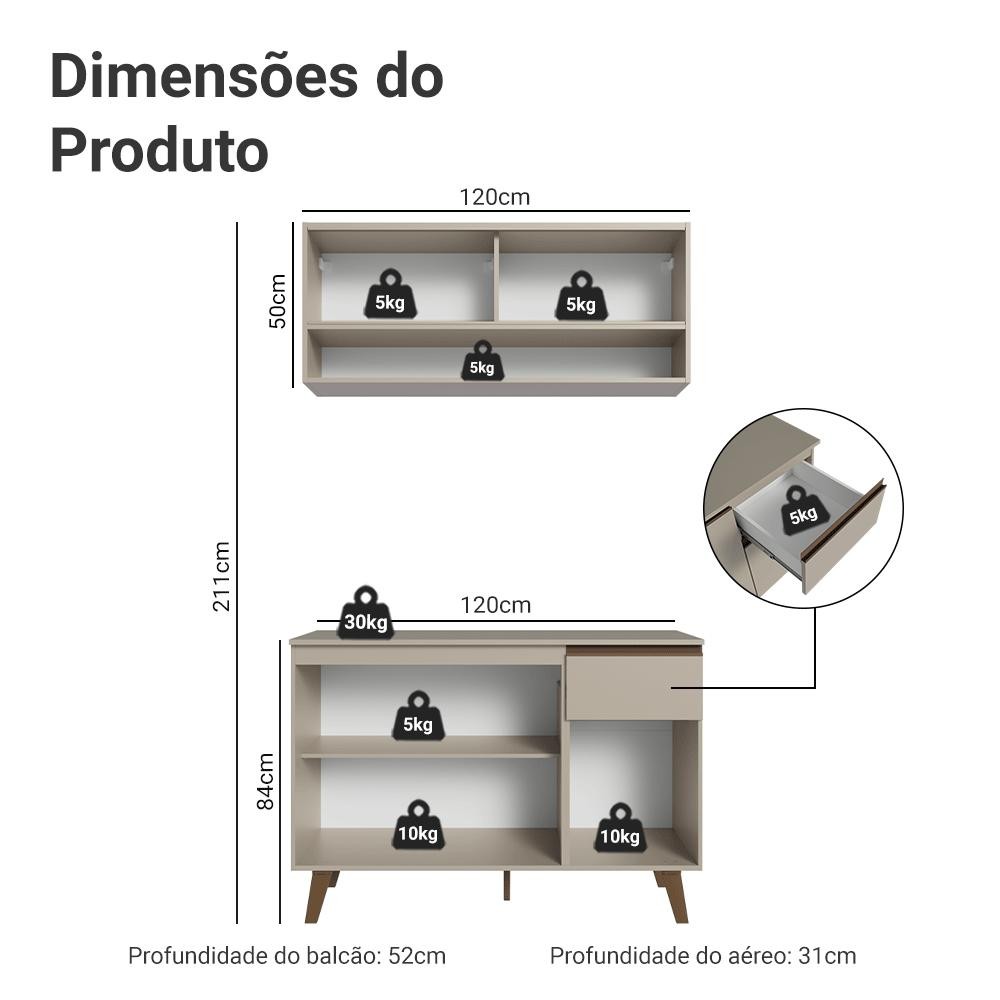 Armário de Cozinha Compacta 120 cm Crema Nice Madesa 01