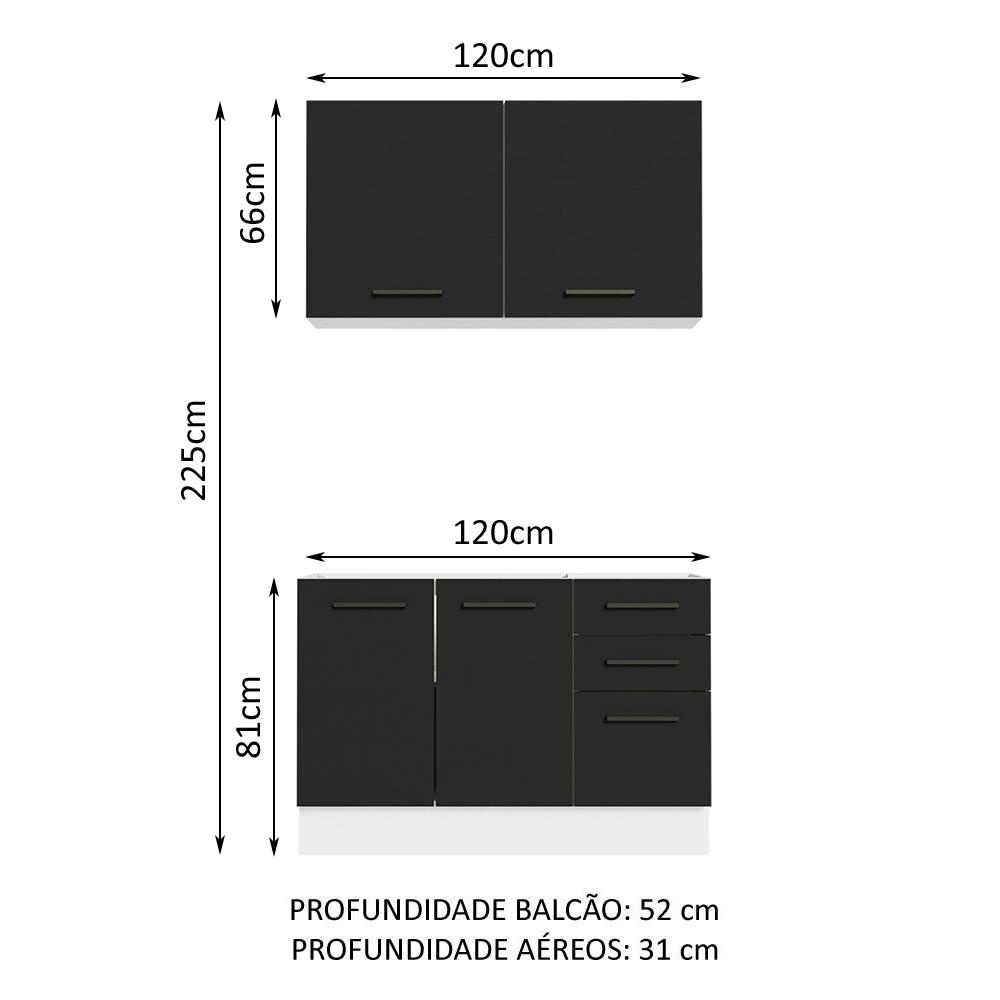 Armário de Cozinha Compacta 120cm Branco/Preto Agata Madesa 01