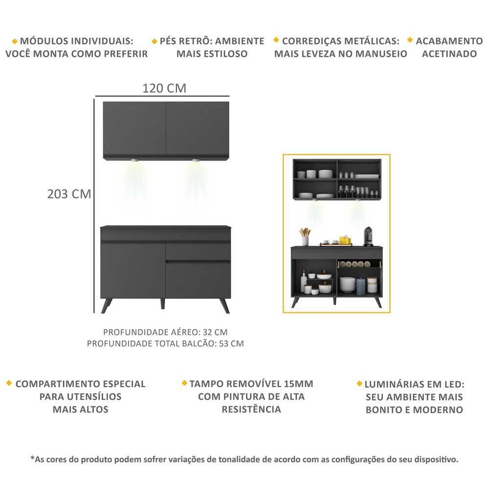 Armário de Cozinha Compacta 120cm com Leds Veneza Up Multimóveis V2012