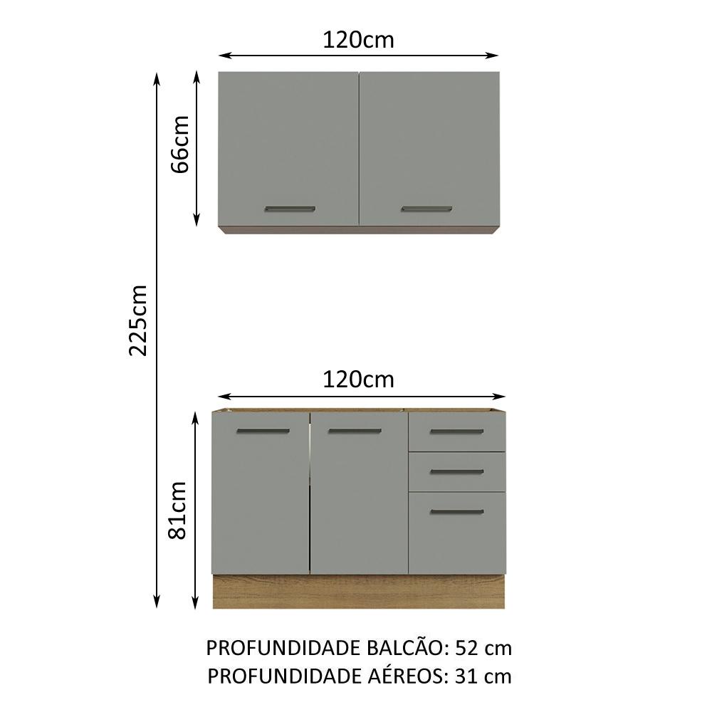 Armário de Cozinha Compacta 120cm Rustic/Cinza Agata Madesa 01
