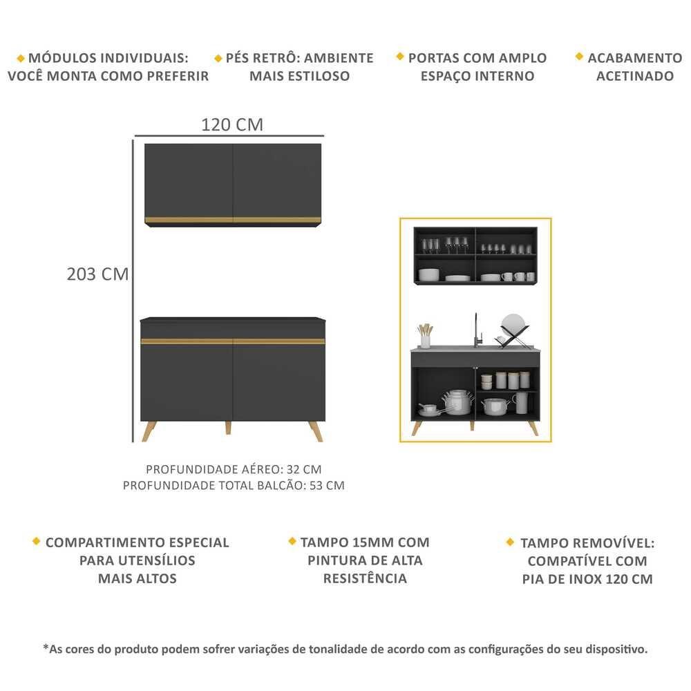 Armário de Cozinha Compacta 120cm Veneza Multimóveis V3748