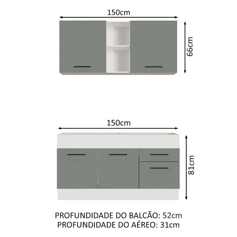 Armário de Cozinha Compacta 150cm Branco/Cinza Agata Madesa 02
