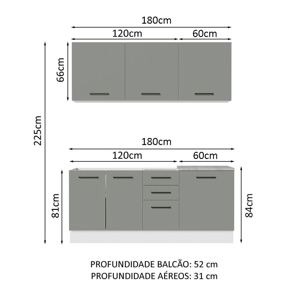 Armário de Cozinha Compacta 180cm Branco Cinza Agata Madesa 01