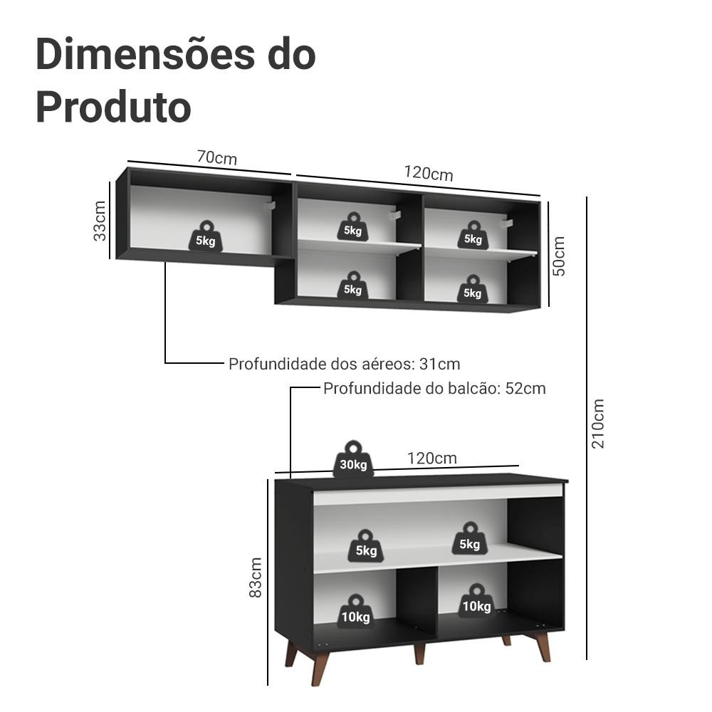 A Cozinha Compacta Reims da Madesa combina de forma perfeita modernidade e elementos retrô. Além de ser muito bonita, ela esbanja qualidade. Conta com corrediças e dobradiças metálicas, puxadores embutidos de alumínio e elegantes pés retrô de madeira maciça. A cozinha é composta por três módulos avulsos e adaptáveis ao seu espaço. Além disso, é ampla e permite que você organize todos os seus utensílios e louças. O balcão ainda conta com tampo em MDP, que pode ser removido para instalação de pia de inox ou pedra de 120 x 52 cm. E para completar, o acabamento preto em alta resistência proporciona maior durabilidade ao móvel. Medidas totais: - 190 cm de largura - 210 cm de altura - 52 cm de profundidade no balcão e 31 cm nos aéreos Itens inclusos: - Um (1) Armário Aéreo de 70 cm com uma (1) porta basculante - Um (1) Armário Aéreo de 120 cm com duas (2) portas - Um (1) Balcão de 120 cm com duas (2) portas e tampo Código do produto: GRRM1900088N Obs.: - A Madesa não disponibiliza serviço de montagem - O produto segue com manual e todas as ferragens necessárias para a instalação - Imagens meramente ilustrativas, os eletros e as decorações não acompanham o produto A Madesa possui compromisso com a sustentabilidade. Geramos energia limpa em nossa própria usina, priorizamos fornecedores responsáveis e utilizamos plástico reciclado em nossa produção. Além disso, reinserimos sobras no ciclo de reciclagem e investimos no desenvolvimento de nossos colaboradores e da comunidade. Garantia: Este produto conta com 1 ano de garantia total, sendo 3 meses de garantia legal e 9 meses de garantia contratual. A garantia cobre exclusivamente defeitos de fabricação e vícios ocultos. Não estão cobertos: problemas decorrentes de montagem incorreta, uso inadequado, exposição à umidade, calor ou luz solar direta, modificações no produto ou desgaste natural.