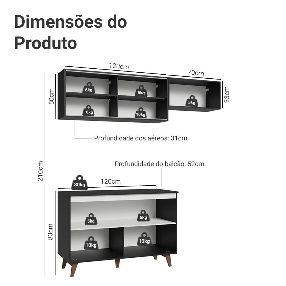 Cozinha Compacta Reims da Madesa: o casamento perfeito entre o moderno e o retrô. Fabricada com itens de qualidade, possui corrediças e dobradiças metálicas, puxadores embutidos de alumínio e elegantes pés retrô de madeira maciça. Os vidros no modelo reflex no aéreo deixam o móvel ainda mais sofisticado. Com ótimo espaço para utensílios e louças, a cozinha é composta por três módulos separados e adaptáveis ao espaço que você tem disponível. O balcão ainda conta com tampo em MDP, que pode ser removido para instalação de pia de 120 x 52 cm. E para completar, o acabamento preto em alta resistência proporciona maior durabilidade ao móvel. Medidas totais: - 190 cm de largura - 210 cm de altura - 52 cm de profundidade no balcão e 31 cm nos aéreos Itens inclusos: - Um (1) Aéreo de 120 cm com duas (2) portas - Um (1) Balcão de 120 cm com duas (2) portas e tampo - Um (1) Aéreo de 70 cm com uma (1) porta basculante Código do produto: GRRM1900098N Obs.: - A Madesa não disponibiliza serviço de montagem - O produto segue com manual e todas as ferragens necessárias para a instalação - Imagens meramente ilustrativas, os eletros e as decorações não acompanham o produto A Madesa possui compromisso com a sustentabilidade. Geramos energia limpa em nossa própria usina, priorizamos fornecedores responsáveis e utilizamos plástico reciclado em nossa produção. Além disso, reinserimos sobras no ciclo de reciclagem e investimos no desenvolvimento de nossos colaboradores e da comunidade. Garantia: Este produto conta com 1 ano de garantia total, sendo 3 meses de garantia legal e 9 meses de garantia contratual. A garantia cobre exclusivamente defeitos de fabricação e vícios ocultos. Não estão cobertos: problemas decorrentes de montagem incorreta, uso inadequado, exposição à umidade, calor ou luz solar direta, modificações no produto ou desgaste natural.