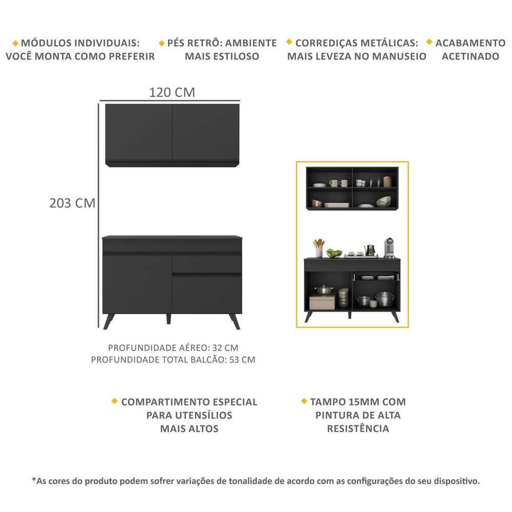 Armário de Cozinha Compacta 2 peças MP3687.895 Veneza Preto