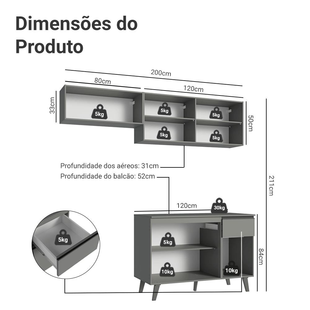 Um móvel prático, funcional e cheio de estilo. Conheça o Armário de Cozinha da linha Nice da Madesa. Além de um design atual, possui ferragens de alta tecnologia, como puxadores em alumínio na coloração titanium, gavetas com corrediças telescópicas e portas com dobradiças metálicas resistentes. O espaço da cozinha é ótimo e o balcão deste conjunto acompanha tampo, que pode ser adaptado ou removido para a instalação de um cooktop ou pia de inox/pedra. O toque final fica por conta do acabamento cinza de alta resistência, seguindo as últimas tendências do mercado de cozinhas. Medidas totais: - 211 cm de altura - 200 cm de largura - 52 cm de profundidade no balcão e 31 cm nos aéreos O que você recebe: - Um (1) Aéreo de 120 cm com duas (2) portas - Um (1) Balcão de 120 cm com três (3) portas, uma (1) gaveta e tampo - Um (1) Aéreo de 80 cm com uma (1) porta basculante - Manual e ferragens Código do produto: XAGRNC2000033B É bom saber: - Imagens meramente ilustrativas - A Madesa não disponibiliza serviço de montagem A Madesa possui compromisso com a sustentabilidade. Geramos energia limpa em nossa própria usina, priorizamos fornecedores responsáveis e utilizamos plástico reciclado em nossa produção. Além disso, reinserimos sobras no ciclo de reciclagem e investimos no desenvolvimento de nossos colaboradores e da comunidade. Garantia: Este produto conta com 1 ano de garantia total, sendo 3 meses de garantia legal e 9 meses de garantia contratual. A garantia cobre exclusivamente defeitos de fabricação e vícios ocultos. Não estão cobertos: problemas decorrentes de montagem incorreta, uso inadequado, exposição à umidade, calor ou luz solar direta, modificações no produto ou desgaste natural.