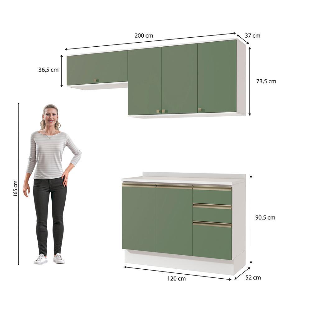 Armário de Cozinha Compacta 3 Gavetas 100% MDF 200cm Branco/Verde Celeste Kappesberg