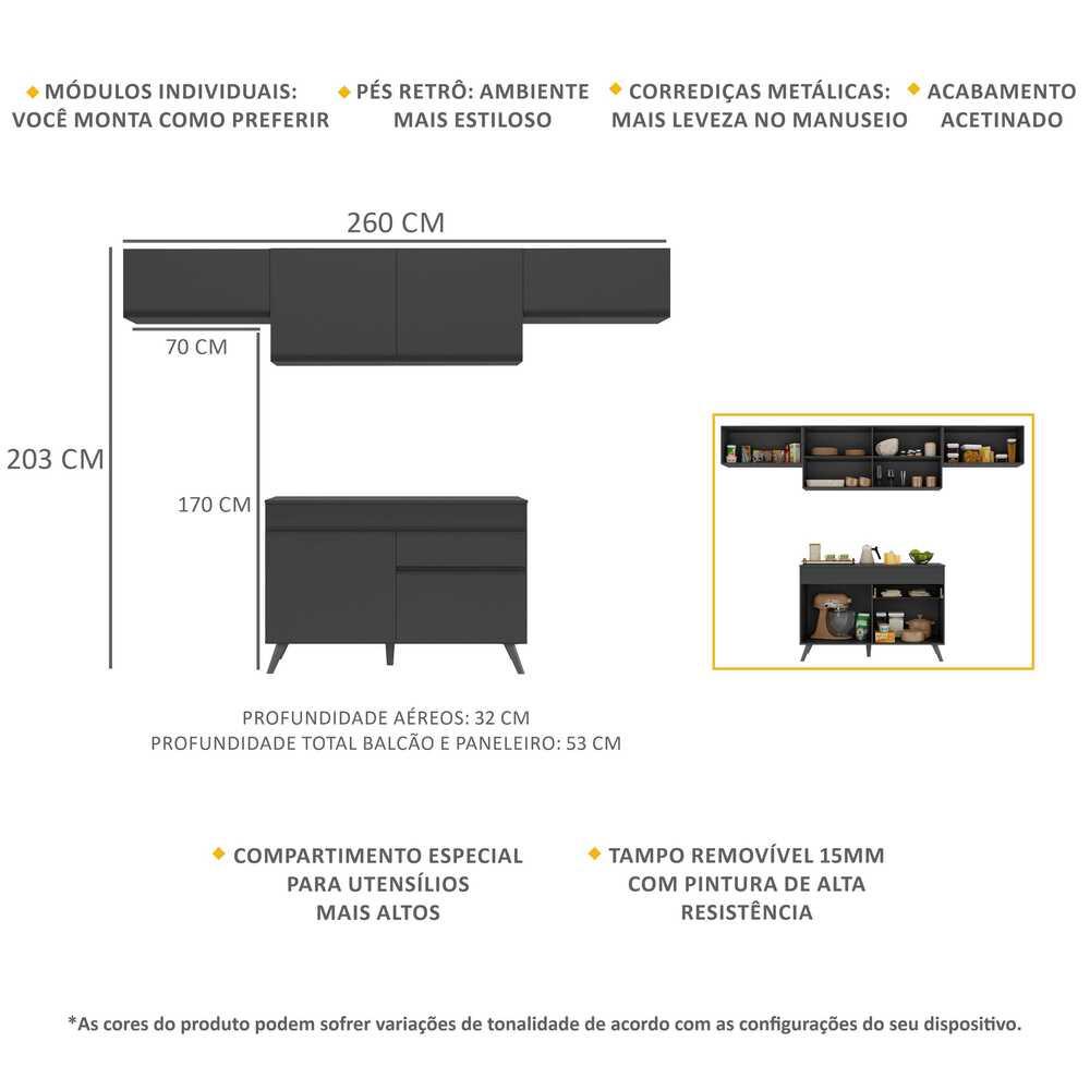 Armário de Cozinha Compacta 4 peças MP3697.895 Veneza Preto