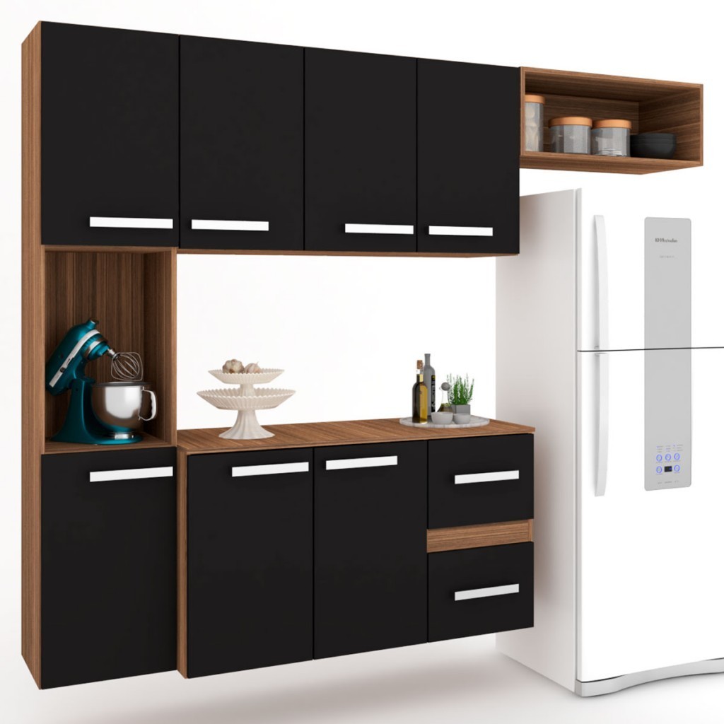 Armário de Cozinha Compacta 7 Portas 2 Gavetas Suspensa Armário e Balcão Jéssica Teka/Grafite - Panorama Móveis