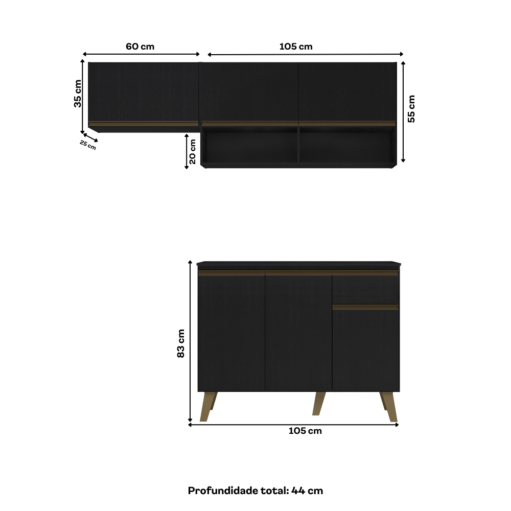 Armário de Cozinha Compacta Atlanta Petit Carraro Preto Touch