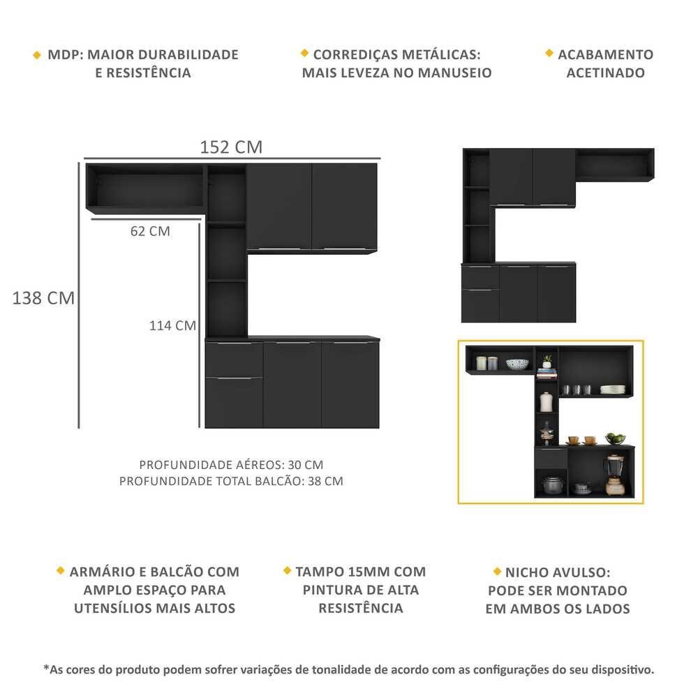 O Armário de Cozinha Compacta com Balcão Sofia Multimóveis tem um excelente custo benefício e é ideal para espaços compactos. Produzida em MDP com acabamento acetinado (cerca de 20% de brilho), que garante maior durabilidade e resistência, possui uma gaveta com corrediças metálicas (mais leveza no manuseio), puxadores em ABS e tampo em MDP 15mm com pintura de alta resistência. Este modelo de balcão não é indicado para utilização de pia. Por ser um modelo de cozinha suspensa (não acompanha pés), você pode ajustar a altura dela para encaixar a geladeira e/ou fogão conforme sua necessidade e o nicho aéreo é individual, ou seja, você pode montar de ambos os lados. Conteúdo da Embalagem: 1 (um) armário com balcão e nicho Dimensões do produto montado: Altura: 138cm | Largura: 152cm | Profundidade: 30cm (aéreos) - 38cm (balcão com tampo) Espaço para fogão/geladeira - Altura: ajustável - Largura: 62cm *Você pode consultar as medidas internas na imagem técnica do produto. *As cores do produto podem sofrer variações de tonalidade de acordo com as configurações do seu dispositivo. Imagem meramente ilustrativa. Decoração e eletros não acompanham o produto. O produto será entregue desmontado e não disponibilizamos o serviço de montagem.